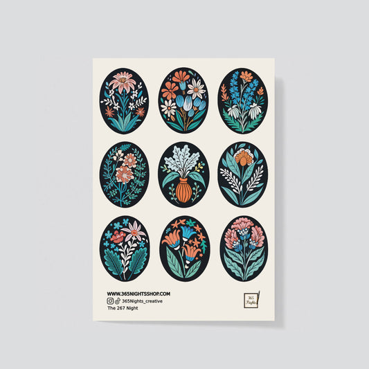 Flower Stamps - Oval Botanical Stamp Washi Sticker Set